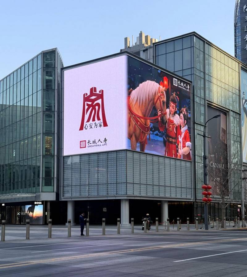 长城人寿此次投放的新春祝福3D广告,位于北京市西城区金融街购物中心西北角。该地段属于金融街核心商圈,汇聚高端消费群体与商务人群,人流量大、曝光度高,与公司品牌形象完美契合。该屏幕面积达302平米,具备强烈的视觉冲击力,动态的故事形象搭配震撼的裸眼3D效果,打造出沉浸式的视觉体验,让新春祝福更具感染力,让每一位驻足者都能感受到来自长城人寿的新春诚意。